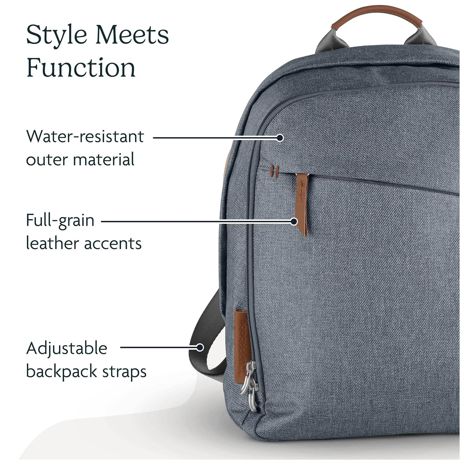 UPPAbaby Changing Backpack/Multiple Storage Compartments/Stroller Strap Attachment/Bottle Insulator and Changing Pad Included/Greyson (Charcoal Mélange/Saddle Leather)(Gregory (Blue Mélange / Saddle Leather))