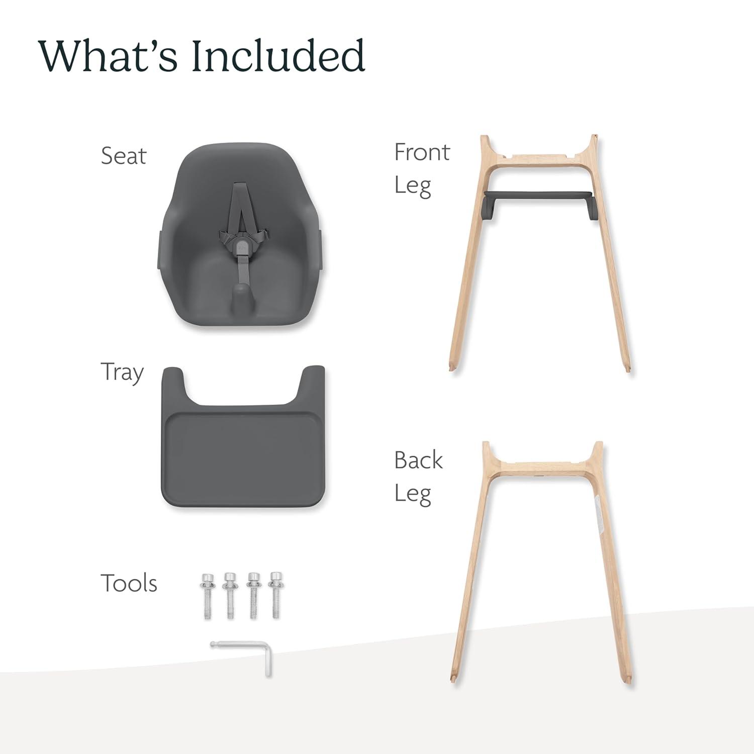 Bring baby to the table with our Ciro high chair and enjoy every bite, together. With its sleek design, easy-to-adjust harness, and perfect-fit tray, we help turn mealtime into family time. 3-position, adjustable tray provides a close fit for baby and less gap for spills Removeable, food-friendly harness design makes deep cleaning simple Dishwasher-safe tray for easy clean-up Bib hook conveniently located at the back of the seat for simple storage Floor-friendly feet designed to move around the home with ease GREENGUARD® Gold, JPMA, and FSC® Certified High Chair Cushion accessory designed for comfort and easy cleanability Specifications • Suitable from 4 months to 3 years • Product weight: 13 lbs Assembled: • 25” L x 20” W x 36” H • 63.5cm L x 50.8cm W x 91.4cm H Seat: • 9” L x 10” W x 11” H • 22.8cm L x 25.4cm W x 27.9cm H What’s Included • High Chair and Tray • Assembly Tools
