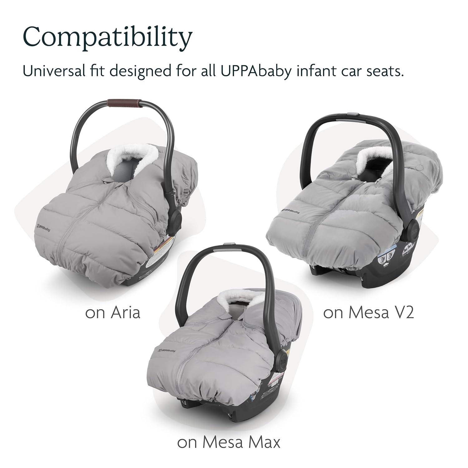 COMPATIBLE WITH: Designed for use with all models of UPPAbaby Aria and Mesa infant car seats. This accessory is only intended for strolling and transporting a child outdoors. MUST be removed from the infant car seat carrier while riding in a vehicle