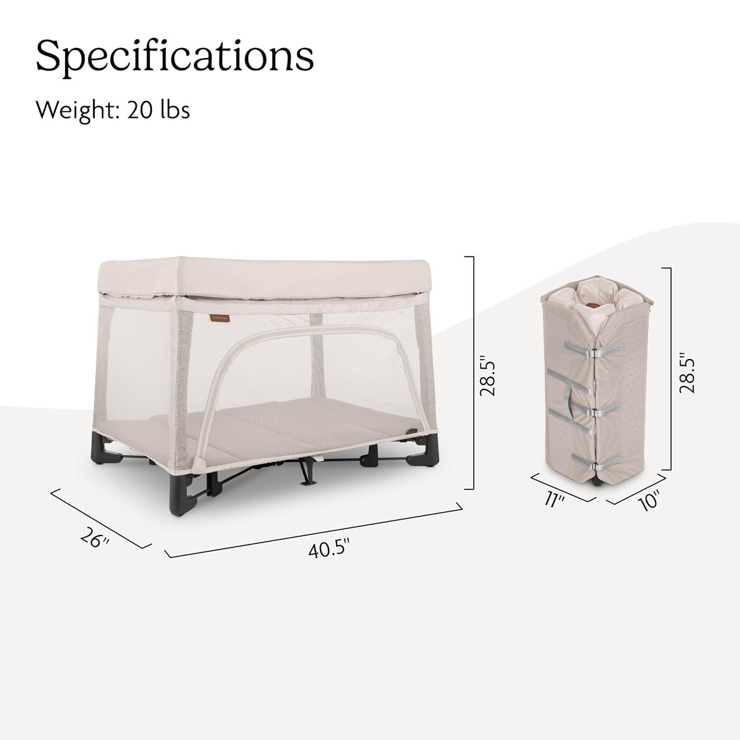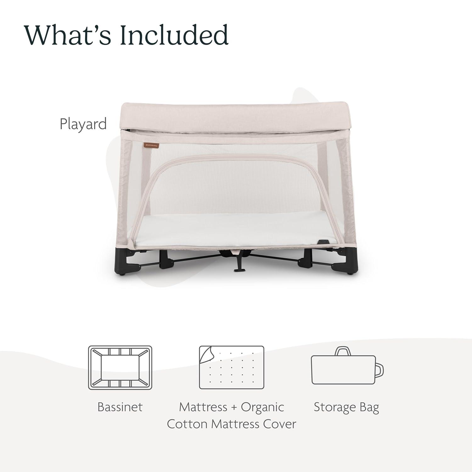 Travel and rest easy with the REMI, UPPAbaby’s first portable playard designed to help baby sleep soundly and safely. Featuring an air mattress (foam-free) and side zip panel giving parents a way to comfortably soothe their child to sleep. Its size, weight and quick set up turns into a go anywhere crib so adventures as a family become easier and more enjoyable. Folds and sets up in seconds with one-hand Triple layer air mesh mattress creates breathable, comfortable and healthier sleep environment for baby Zip open panel for a more comfortable access to soothe baby to sleep Easy to zip on mesh bassinet attachment for added ventilation and provides an elevated sleeping environment perfect for bedside Open, airy design provides clear views Above ground design to keep baby draft proof Durable, woven mélange fabric wraps around top rail for added comfort and softness Convenient storage bag included with pocket to store bassinet attachment Greenguard Gold Certified Playard: Suitable from birth to 35” tall Bassinet: Suitable from birth to 20 lbs Dims: 42″ L x 27″ W