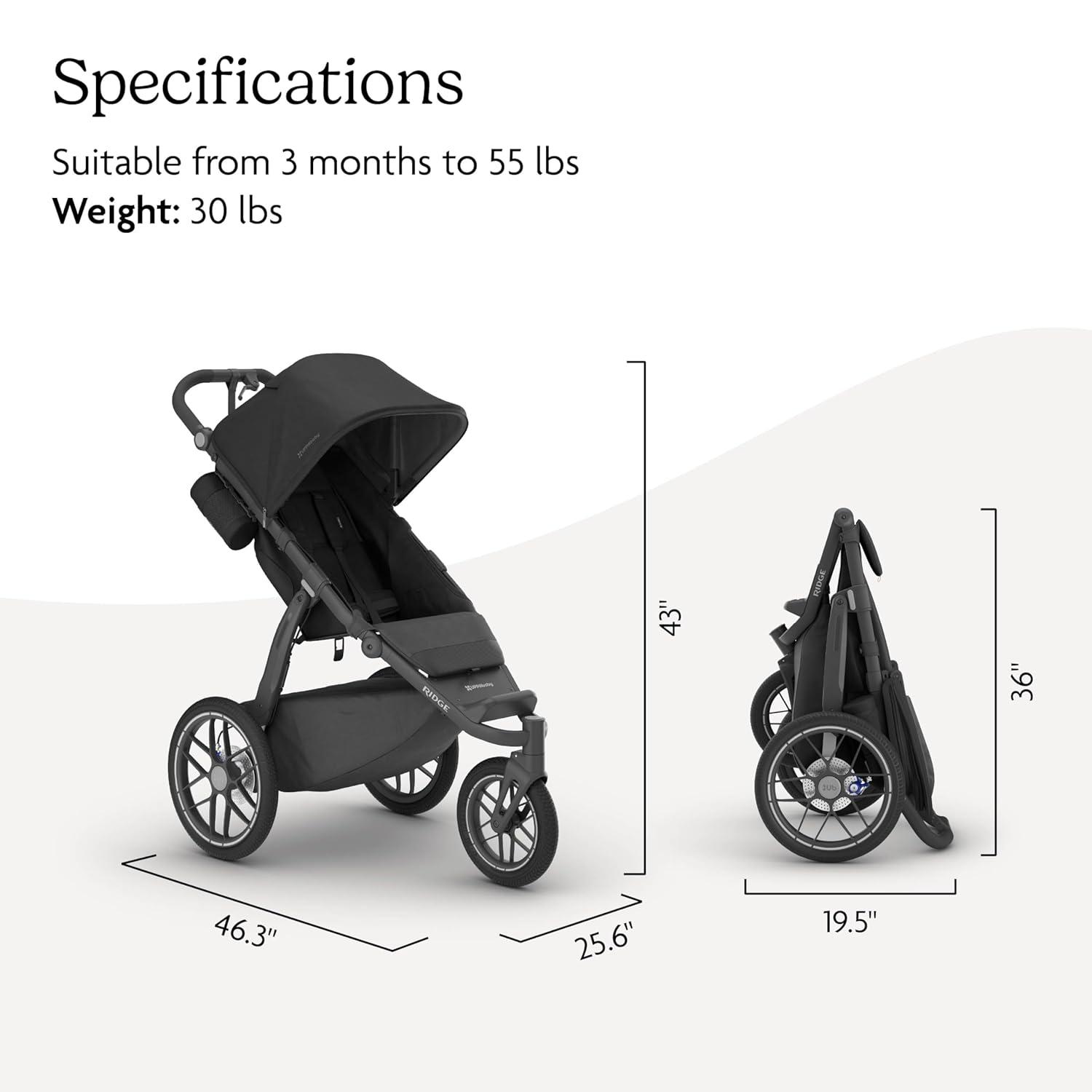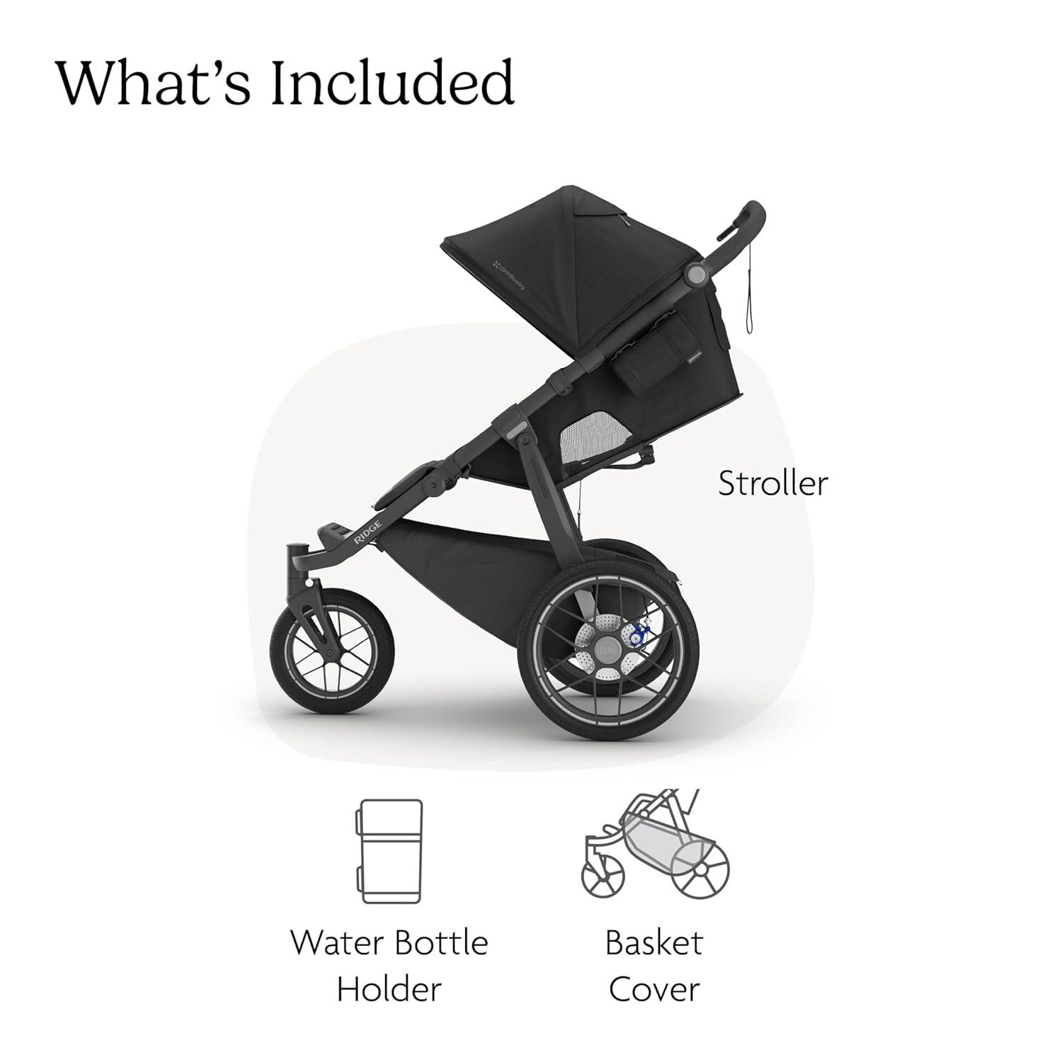 UPPAbaby Ridge V2 Jogging Stroller | All-Terrain Performance Suspension + Never-Flat Tires Built for Walking, Running + Trails | Water Bottle Holder Included | James (Black |Carbon Frame)(James (Black))